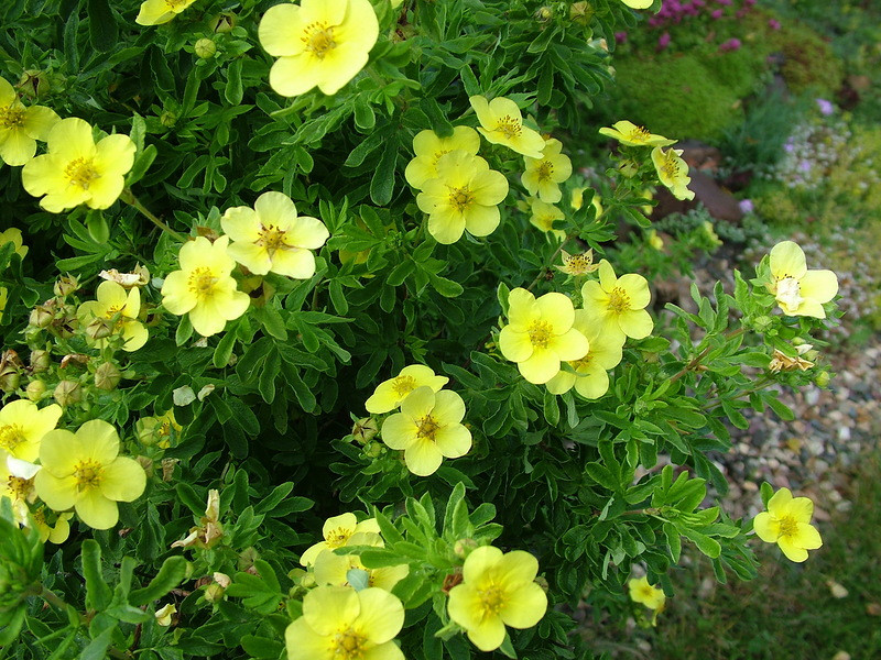 Лапчатка кустарниковая, известная также как курильский чай, пользуется большой популярностью среди садоводов и ландшафтных дизайнеров благодаря своему уникальному и привлекательному внешнему виду. Этот кустарник украшен множеством ярких бутонов, которые создают эффектный визуальный акцент в любом саду. Обычно цветы имеют насыщенно-желтый оттенок, но также встречаются белые, оранжевые, красные и розовые вариации.